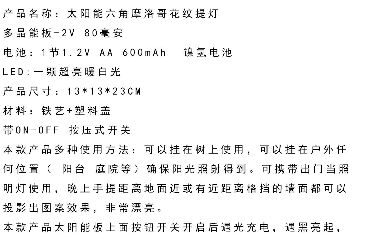 亞馬遜LED 戶外庭院裝飾燈六角摩洛哥花紋鏤空 復古 鐵藝投影燈
